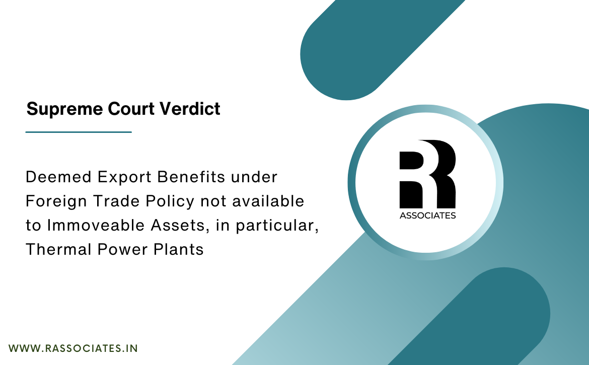 Supreme Court Verdict: Deemed Export Benefits under Foreign Trade Policy not available to Immoveable Assets, in particular, Thermal Power Plants